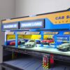- Prominent Signage: The exterior is crowned with bold, eye-catching signage in a striking blue and yellow theme, featuring branded elements like MICHELIN, CAR SERVICE logos, and custom shop names (e.g., “THANH LONG”).