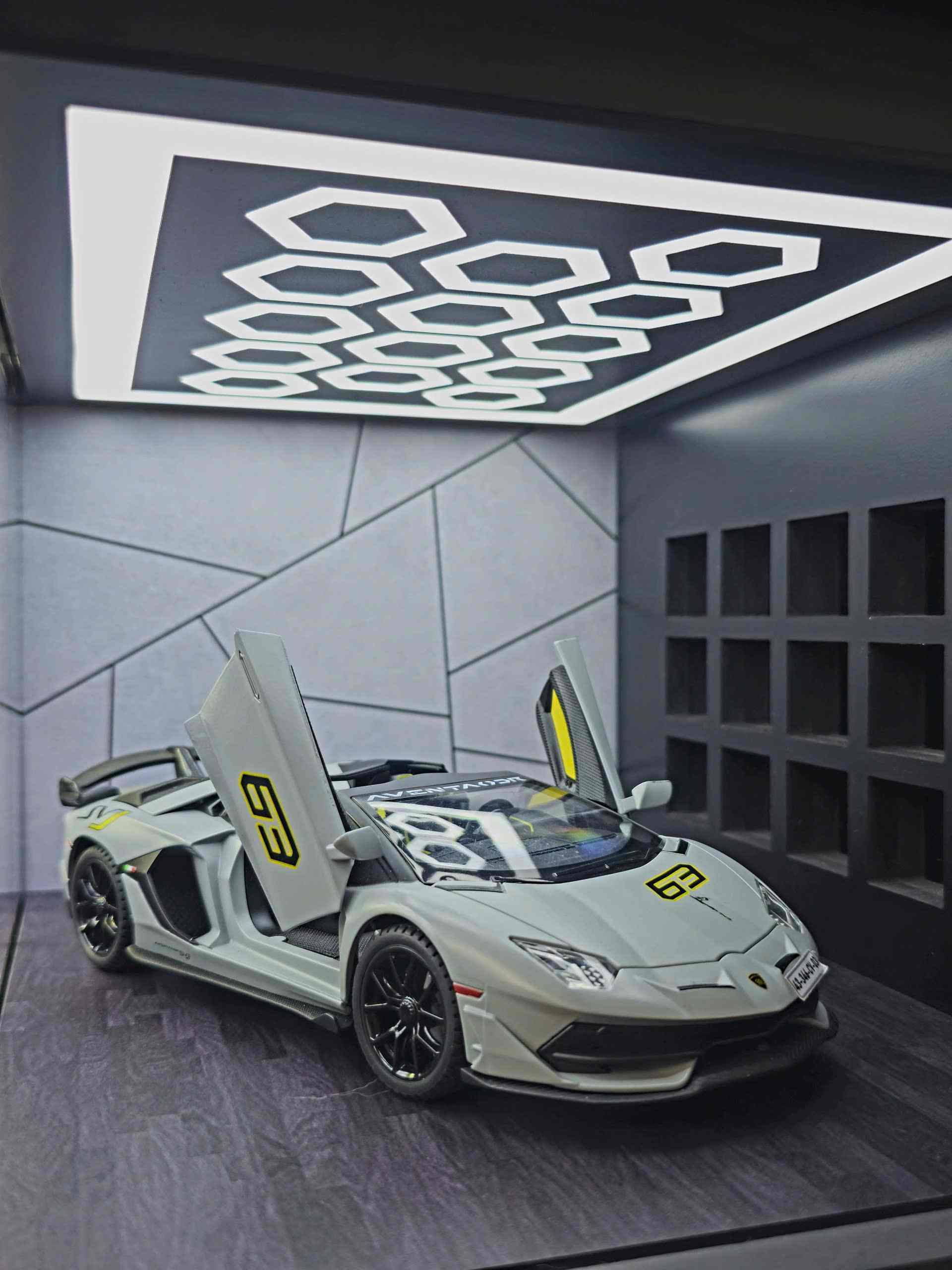 Hypercar & sportcar display garage emphasizing gloss and surface detail