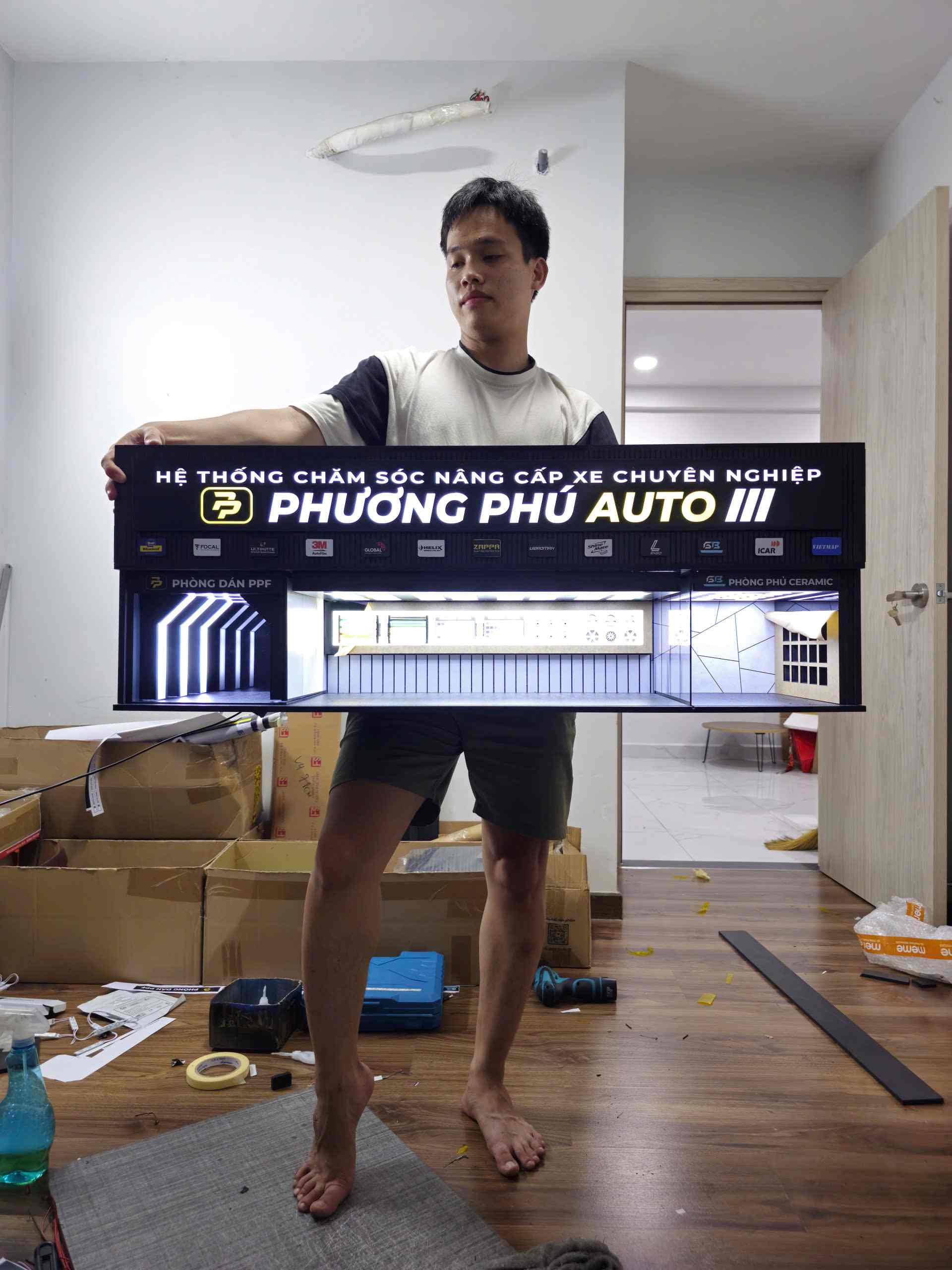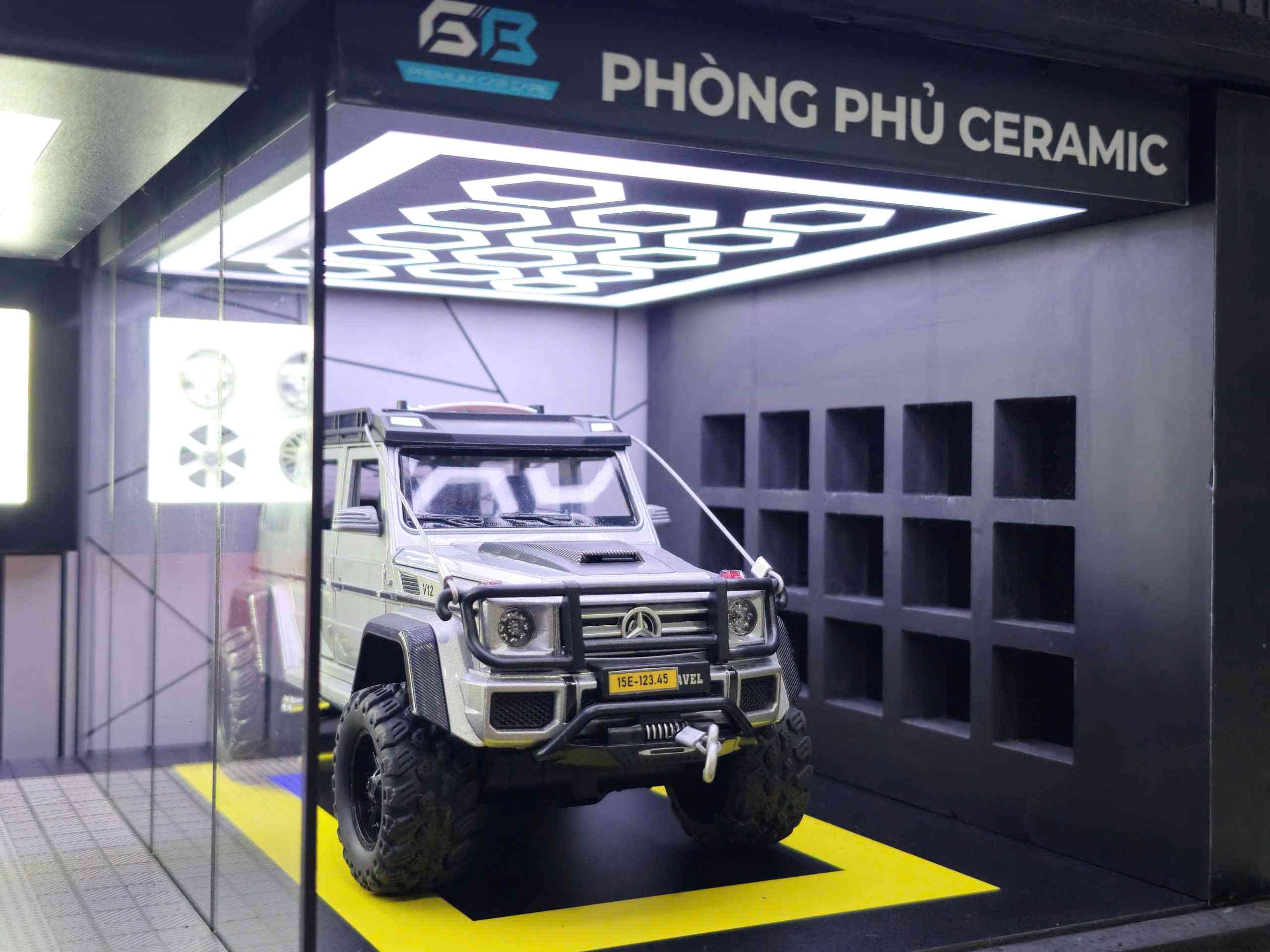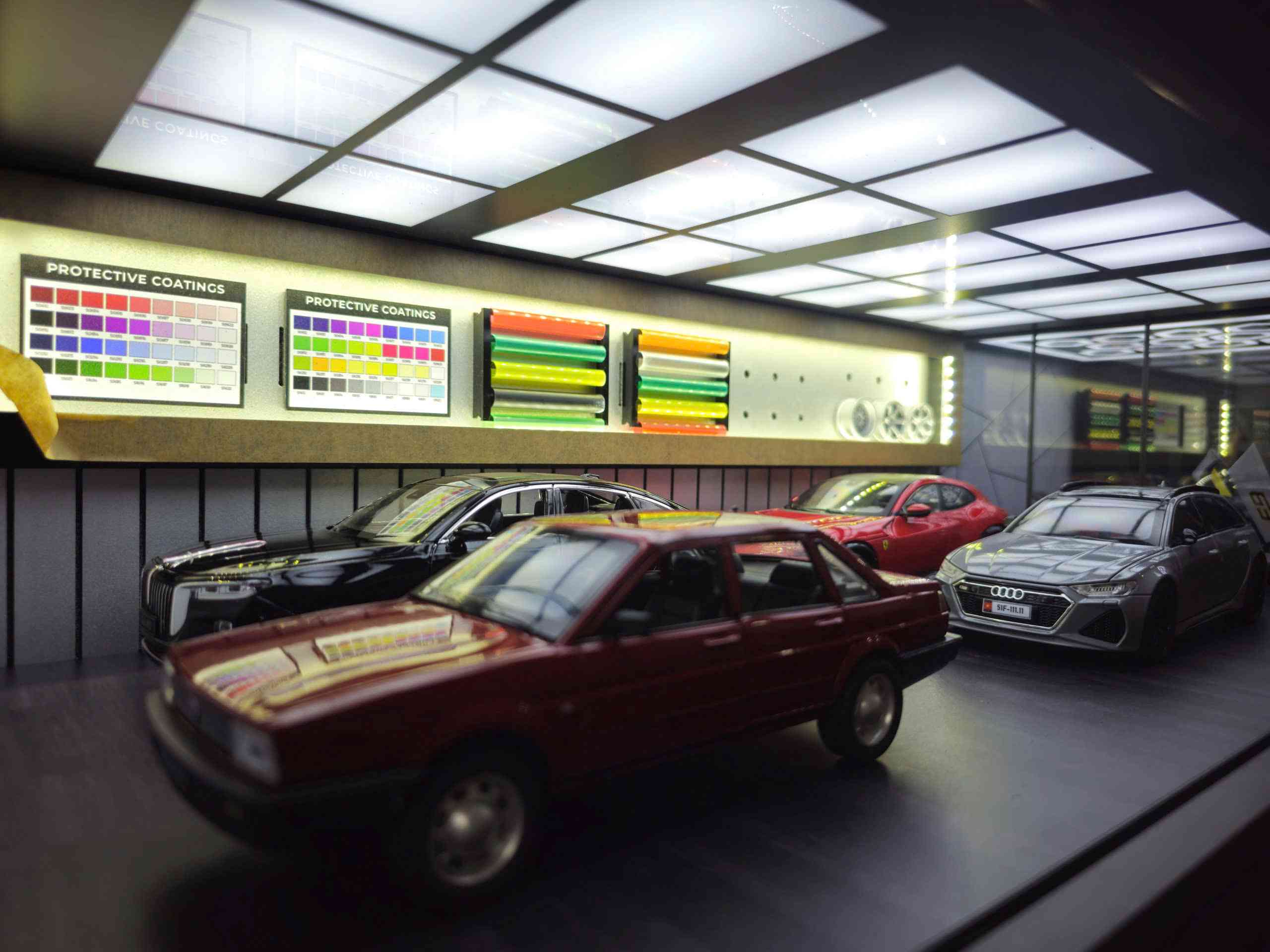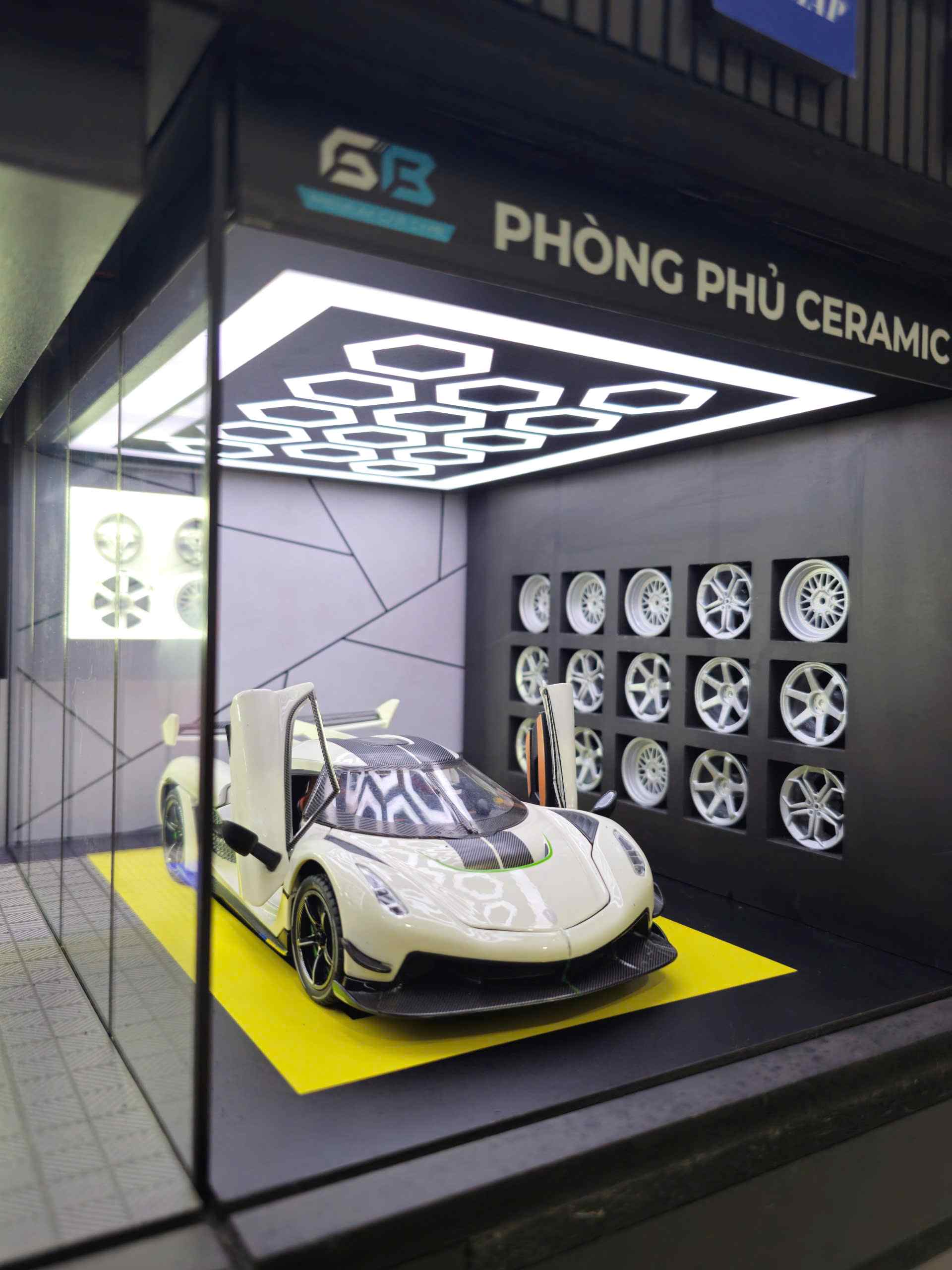 This product is an all-in-one professional diorama, accurately representing the workflow and atmosphere of a high-end automotive care center. Each area serves a distinct function while remaining seamlessly connected within a unified display layout.